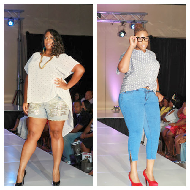Celebrity hosts plus model Liris Crosse and VH1/MTV's author Tionna Smalls (NO she is not the rapper Biggie daughter LOL) kept me in tears all night with their yin & yang comedy. #Beyonce #Kellie #ItoldyoumynameisMrs.Carter LOL, you needed to be there to catch that, sorry if you missed it and you have to come next year. Besides the comedic relief, the showcase presented some of our favorite plus size retailers and new designers from around the U.S. The runway was filled with curvy friendly fall must-haves from Torrid, Ashley Stewart, Niche Boutique, Pile NY, Annie Kaufman, Serita Bell, P.S. Couture, Empress Lingerie, Real Divas Are Large, Tru Diva, Marco Hall, featured designer Shanda Freeman, and first timer C. Nicol. I am a warm weather person so I'm a little sad to see summer go. Trading my plethora of maxi dresses for bulky dumb weather coats! Although I must admit that I am looking forward to the jumpsuit trend this fall. Designers Marco Hall and Tru Diva set the bar high for that trend.
